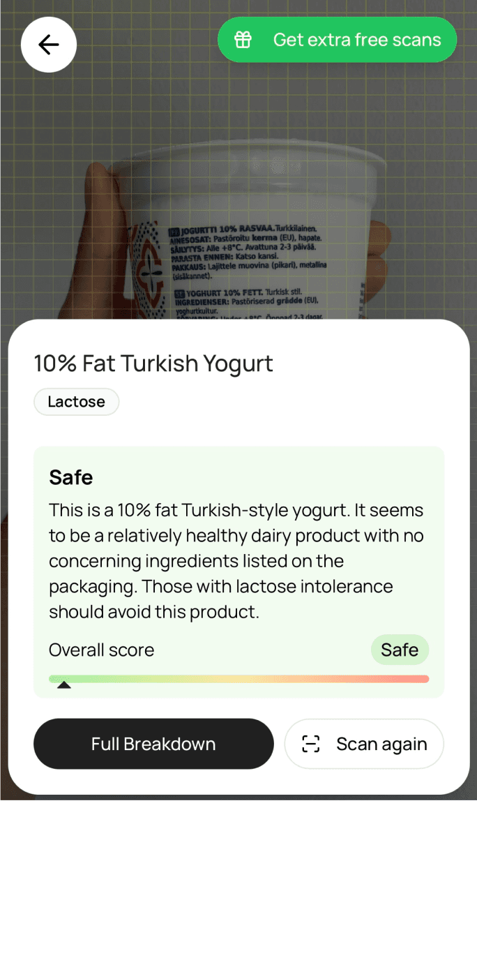 Scan products in 10+ languages. No matter where you are—at home or abroad—MaxScanner speaks your food’s language.